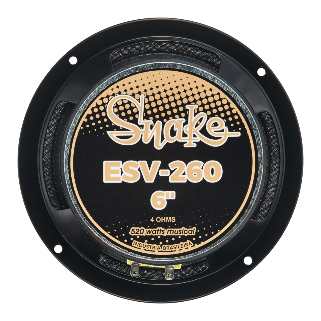 O alto-falante ESV 260 é um midrange que oferece excelente linearidade, boa eficiência e ótimo gerenciamento de energia, entregando som de alta qualidade com potência e definição. Conta com um sistema exclusivo de ajuste de fase aletado em alumínio montado no polo central, que atua nas altas frequências e melhora a dissipação térmica da bobina para maior capacidade de potência. Seu conjunto magnético otimizado por FEA garante alto SPL, baixa distorção e desempenho superior em aplicações automotivas de médio rendimento.