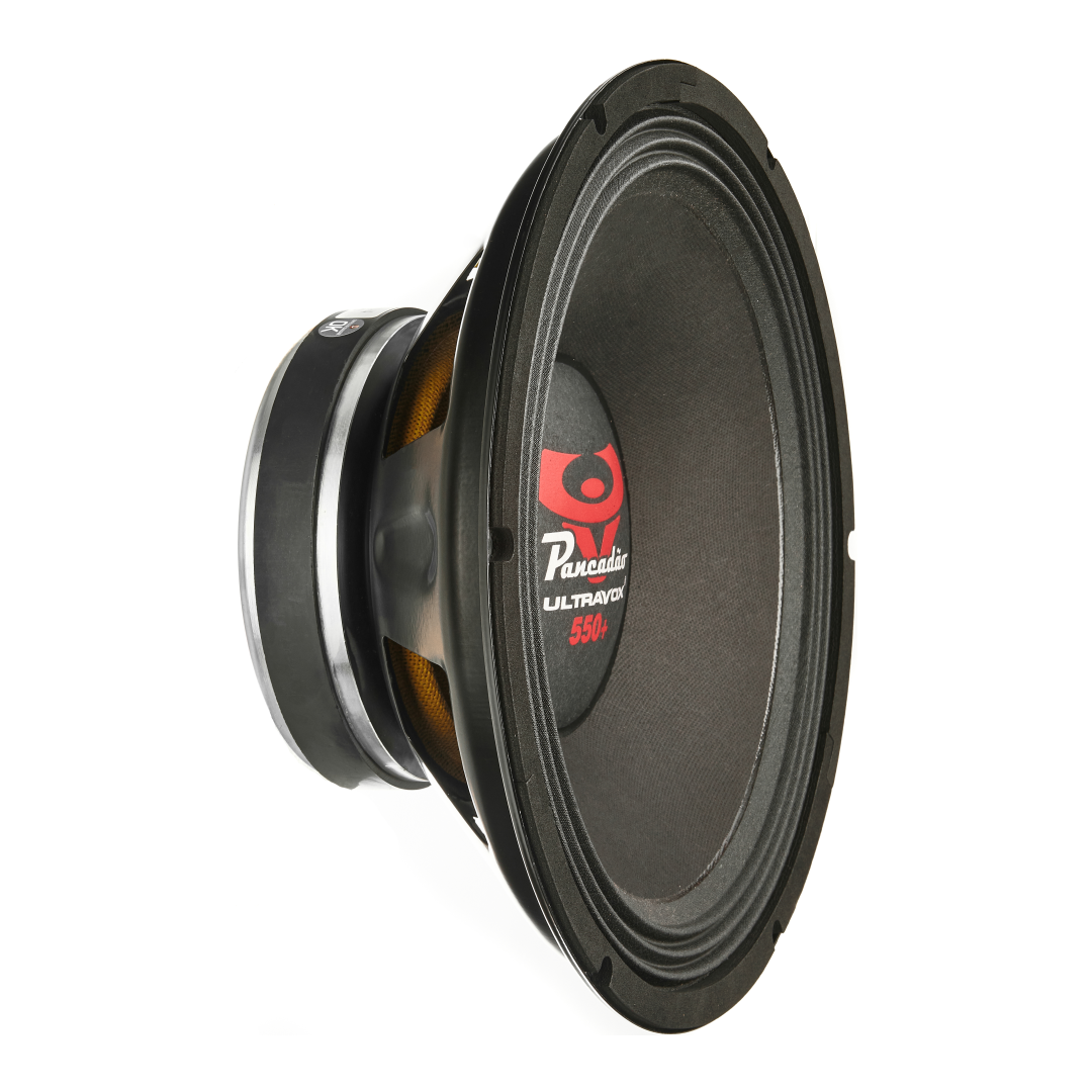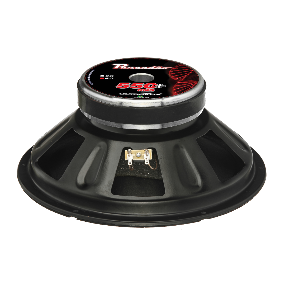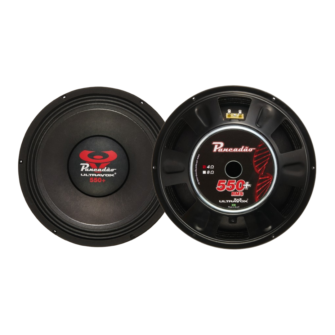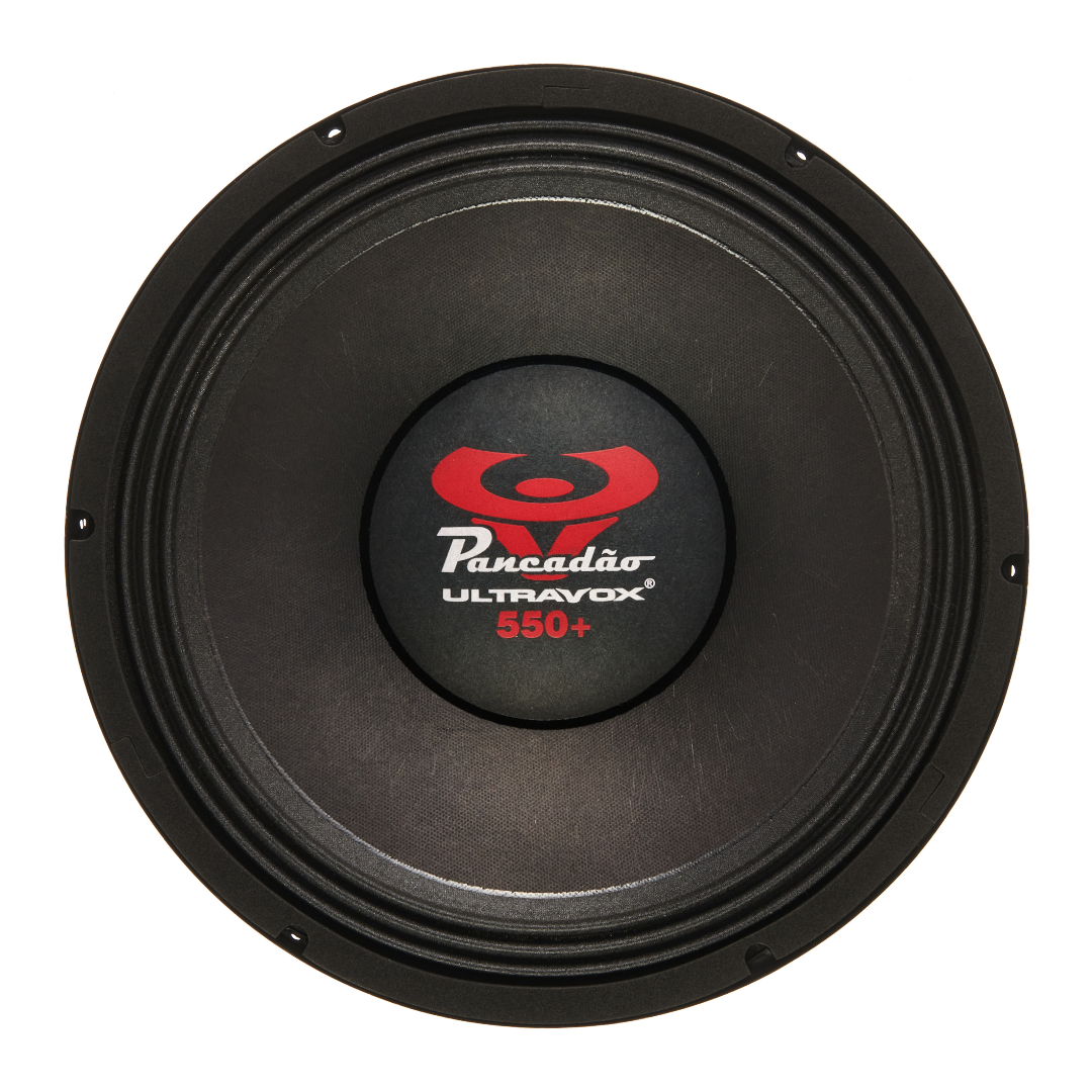 O alto-falante PANCADÃO 550+ possuí carcaça em chapa de aço reforçada, conjunto motor com ímã de 155×20 mm e peças metálicas otimizadas para maior fluxo magnético, conjunto mecânico com cone de celulose reforçado com fibra vegetal, borda de onda tripla especial, guarnição em EVA, calota personalizada e bornes soldáveis. Conta ainda com bobina de 3″ em fôrma de kapton com enrolamento CCAW de alto desempenho, garantindo eficiência térmica, resposta precisa e excelente rendimento mesmo em altos níveis de exigência.